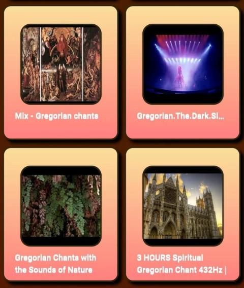 Выбор видео, которые вы можете найти в этом приложении был сделано тщательно, так что вы можете слушать лучшие григорианские песнопения средневековой эпохи.