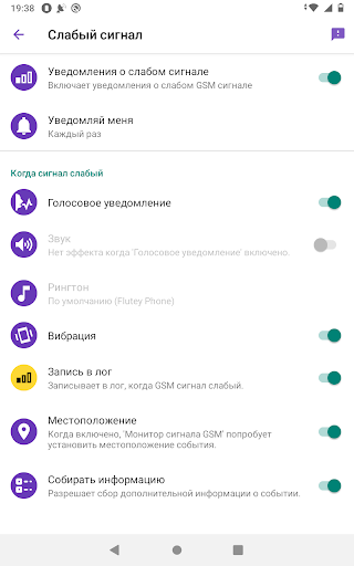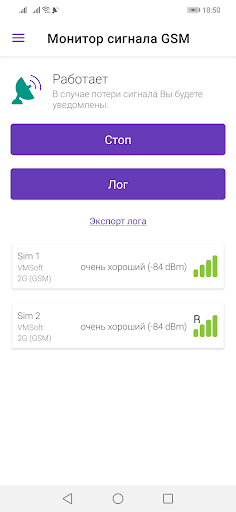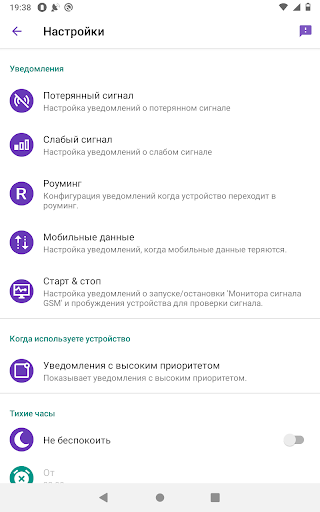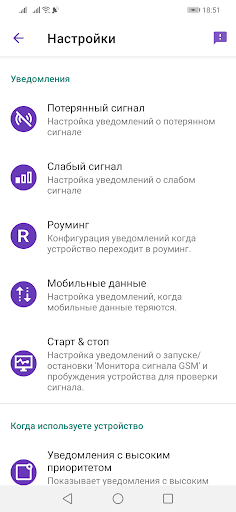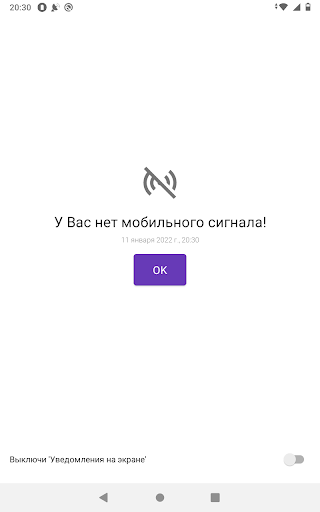 'Монитор сигнала GSM' может также уведомлять Вас и когда GSM сигнал восстановлен, потерян мобильный интернет или заходите в зону с роумингом.