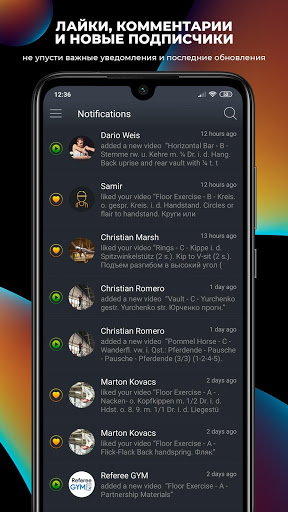 Подписывайся на знаменитых гимнастов и смотри их видео. Вдохновляйся успехами великих спортсменов и получай советы от гимнастов со всего мира. Задавай вопросы по выполнению гимнастических элементов разным спортсменам. Получай лайки и просмотры, которые выводят твои видео в топ сильнейших.