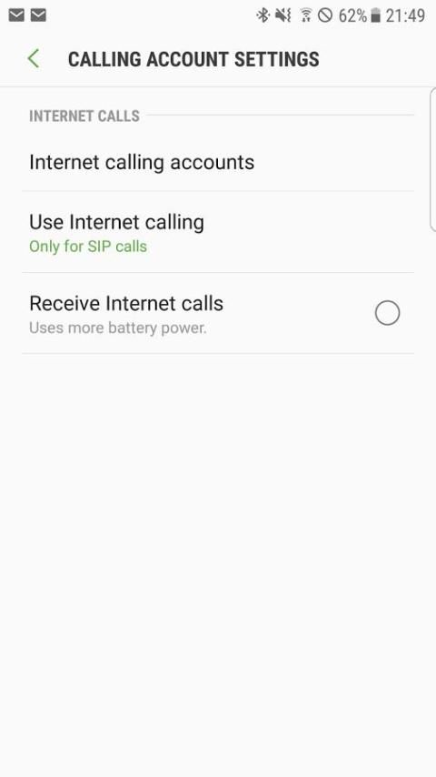 На некоторых устройствах (например, Samsung 2017 Серия телефонов и таблетки) приложение работает - однако пустой экран «Интернет-вызов счетов» отображается. Похоже, что версия Android на этих устройствах не включает эти экраны конфигурации. К сожалению, это приложение не может помочь то. Вместо этого, автономное приложение VoIP должно быть установлено.