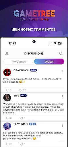 Добро пожаловать в GameTree, место, где можно найти друзей для игр, команду, LFG(looking for group - поиск группы). Это пристанище геймеров, где можно найти друзей по команде и отправиться в путешествие по захватывающим игровым мирам.