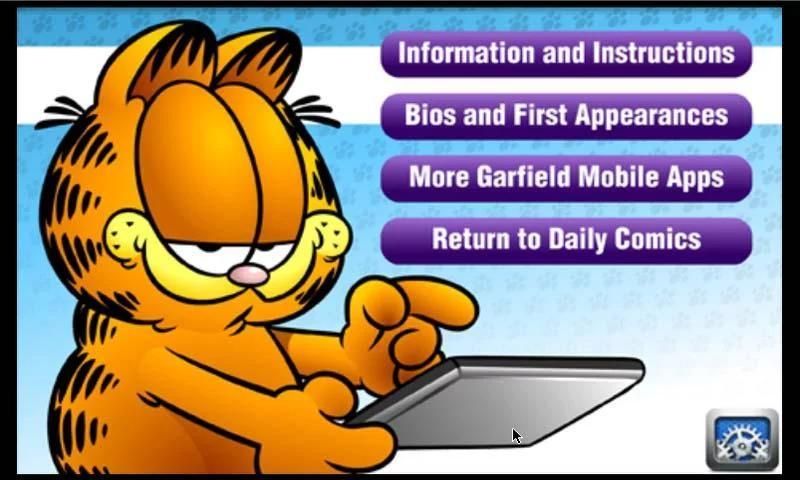 Как Гарфилд, это приложение является склонным к ворсом атак. Примерно через 10 секунд бездействия, навигации, заголовок и панель инструментов исчезнет. Чтобы вернуть их, прикасаться к середине комикса. Нажмите еще раз, чтобы они исчезнут. Не беспокойтесь - вы все еще можете изменить комиксы, касаясь краев.