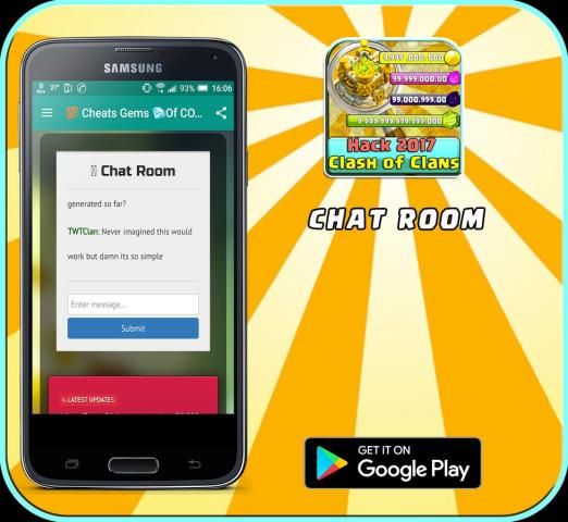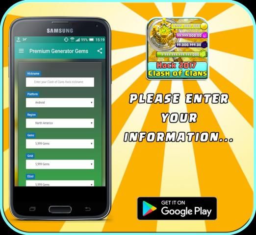 Это приложение сделано только для шутки и получать удовольствие своим друзьям, лозы и не хак для Clash кланов или хакерской приложение для и предоставляет какой-либо способ