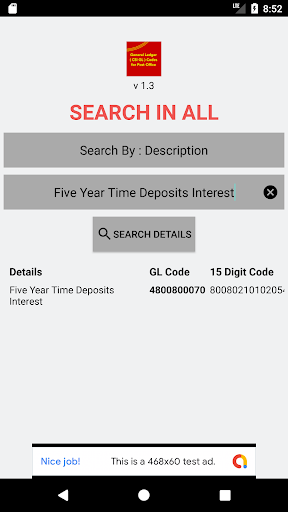 This application will help the users specially Postal staff to help to find the GL ( General Ledger ) codes by various options