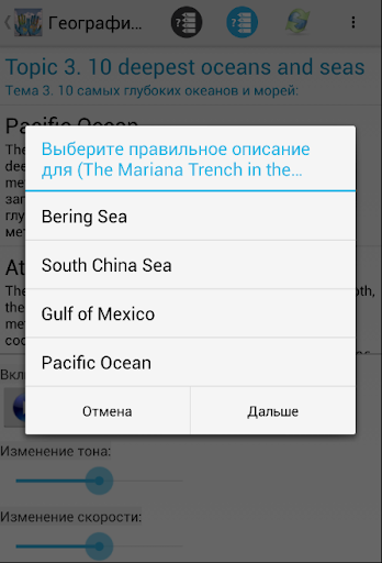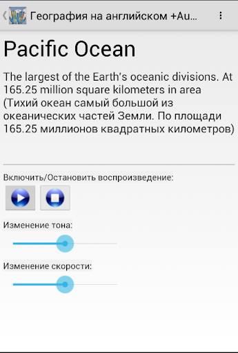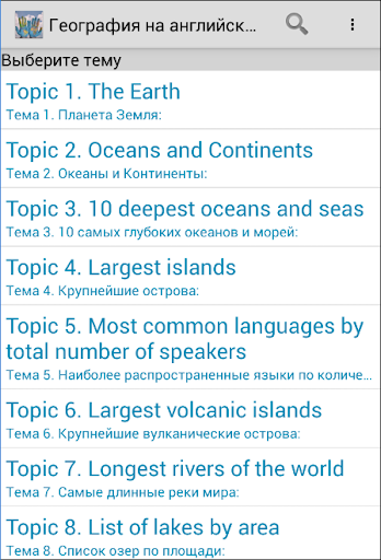 С приложением "География на английском Audio" вы можете слушать, читать и учить интересные темы представленные ниже в офлайн режиме: