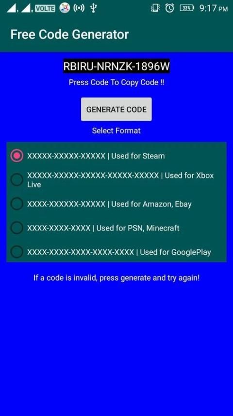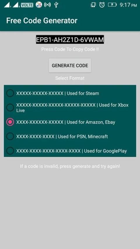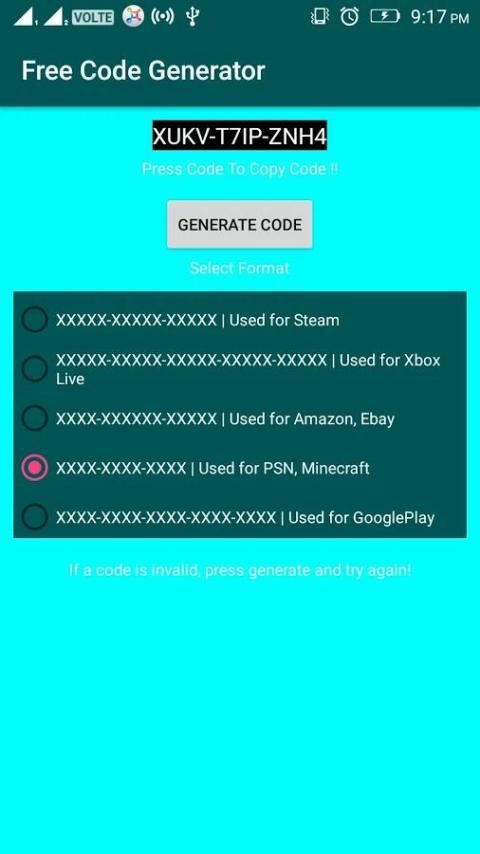 Примечание: Подарочный код, генерируемый фиктивный код. Это может или не может работать.