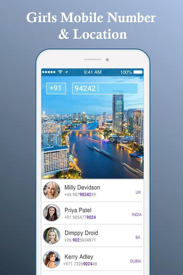 Girls phone numbers app will help you easy find any girls numbers which is very difficult nowadays but this makes it easy, so start chatting with her on call which is the best way to start dating online, and it is main reason to have developed to get any girl's number from your city.