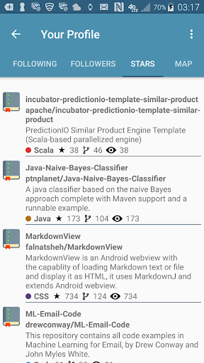 - Sync С вашими последователями, навигации по профилям пользователей GitHub