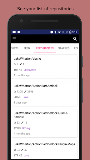 • Просмотр вашего профиля, репозитории, снятых репозиториев, подписчиков и следующих возможностей. • Посетите другие «Профили» и просмотрите свои репозитории, подписчики и розыгрыш REPOS •Ваш кормить