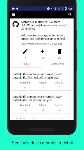• См. Список измененныхФайлы и соответствующие патча для коммитов и вытягивания запросов