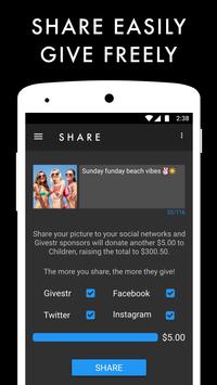 SHARE: Snap, share, and start trends — for good. Post your perfected photos through Givestr to your favorite social networks.