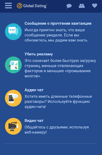 Global Dating предлагает вам познакомиться с участниками со всего мира и содержит множество супер преимуществ. Вы можете взаимодействовать с участниками, не покидая страницы, чтобы иметь возможность позвонить и увидеть участника через видео. Все супер-преимущества включены в подписку и не требуют дополнительных затрат на 24 часа в сутки. У Global Dating есть не только быстрое приложение для Android, но и быстрый веб-сайт.