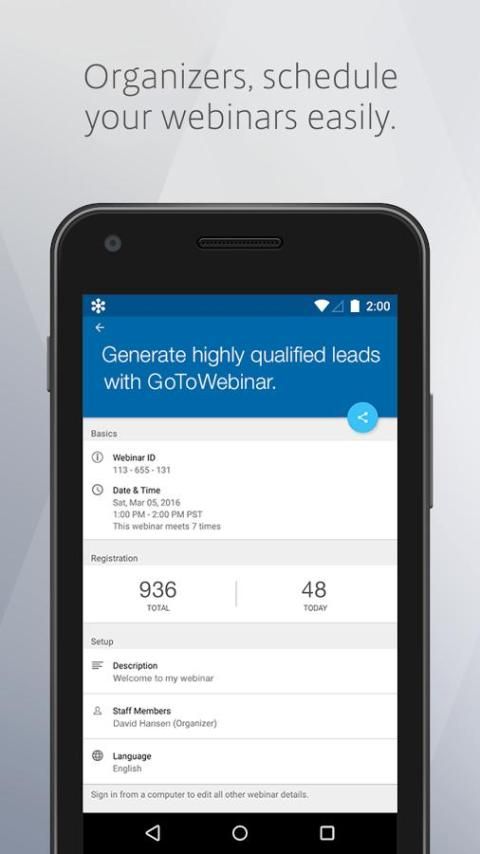 Находясь вдали от вашего компьютера не означает, что вы должны пропустить на онлайн событий. Бесплатно GoToWebinar мобильное приложение позволяет не только видеть и слышать вебинаров, но принять участие в них. Независимо от того, где вы находитесь, вы можете задавать вопросы, принять участие в опросах и многое другое.