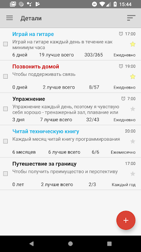 Ежедневные, еженедельные, ежемесячные, годовые привычки / цели.