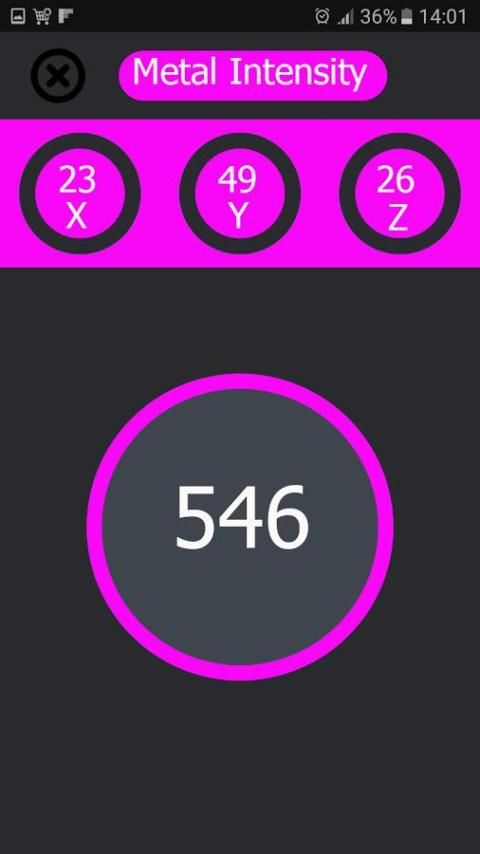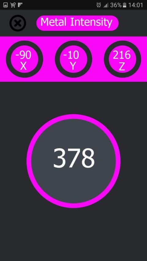 - И переместить его вокруг. очень проста в использовании, просто переместить приложение вокруг и читать измерений, ваше интеллектуальное устройство будет вибрировать или тревоги, то есть ферромагнитный материал находится рядом.