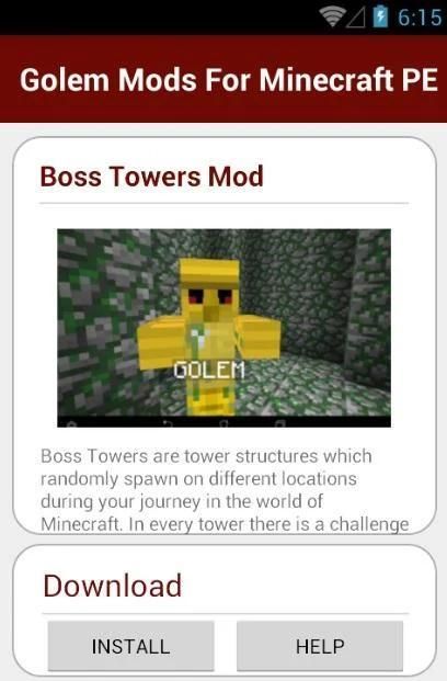 Это Голем модов для Minecraft ПЭ могут быть применены только с применением BlockLauncher, и вы должны установить полную версию MCPE и BlockLauncher в вашем смартфоне или планшете.