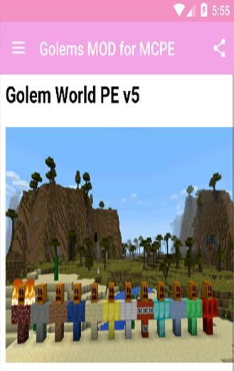 Големы MOD для MCPE "на самом деле найти мобов внутри компьютерной версии, но теперь они получают вошли в игру. По крайней мере, если вы установите мод они действительно сильны и тяжелый, что будет главной целью является создание врагов, чтобы защитить вас от злых существ, как зомби, а также другой неприятный человек. Если вас укусил толпой и борьбы, то они придут, чтобы защитить, а также преследовать злодеев. Вы можете найти два способа найти икру можно использовать просто не достаточно, чтобы получить яйцо, текущие продукты, или вы можете создать особую структуру, смотрите ниже, чтобы быть в состоянии получить их.