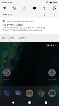 Приложение "Google Сети" для Android помогает управлять сетевыми подключениями. Оно доступно только на устройствах Project Fi, Pixel и Nexus. Чтобы на вашем устройстве работали все сетевые функции Wi-Fi, не забывайте обновлять приложение. Инструмент "Ассистент Wi-Fi" автоматически подключает устройство к самым мощным общедоступным сетям и обеспечивает защиту данных с помощью VPN.