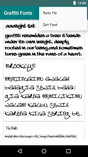 Graffiti Fonts Application is a free font pack with graffiti font style design to change your device look once you can install in your android devices. Enjoy this font pack for Samsung Galaxy and HTC smartphones.