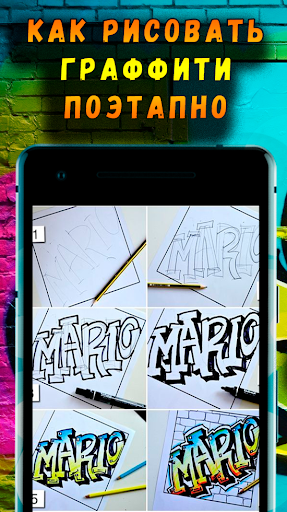 Граффити сейчас очень популярно среди молодежи, и многим интересно Как рисовать граффити поэтапно. Рассказать о том, Как рисовать граффити буквы довольно сложно потому, что существует много разных стилей граффити. Но в нашем приложении вы найдете самые полезные инструкции по созданию Граффити пошагово. Мы собрали целую коллекцию уроков Граффити для начинающих. Сейчас это искусство настолько развито, что вы можете создавать даже объемные 3д рисунки поэтапно с всевозможными эффектами и яркими красками. Чтобы начать учиться граффити не нужно бежать в магазин за баллоном краски, вы легко можете начать с Граффити карандашом на простом листе бумаги.