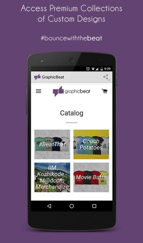 GraphicBeat.in presenting the shopping app for Android - making way for faster, smoother and a completely gratifying shopping experience. Getting your bouncy t-shirts at your door steps just got way easier. Now, shop on the go, receive updates about new arrivals & offers by downloading the app for free.