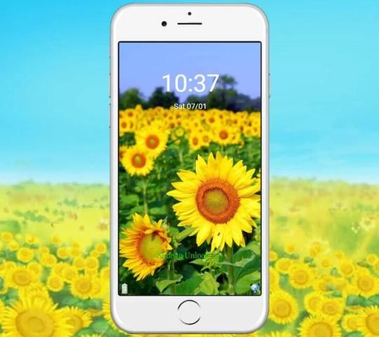 - Green Sunshine Sunflower Theme Lock Screen с красочными расслабляющими вспышками часов HD HD.