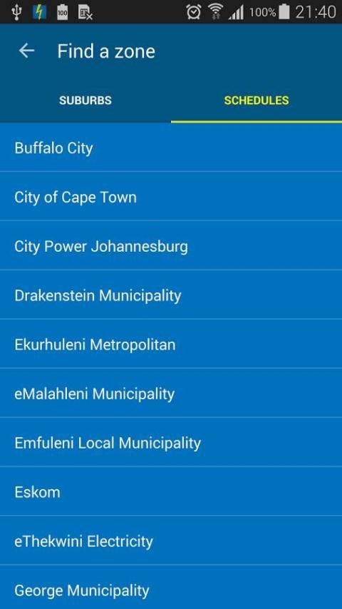- Поиск и сохранение графиков loadshedding со всей Южной Африки, используя наш обширный сброс нагрузки график базу данных.