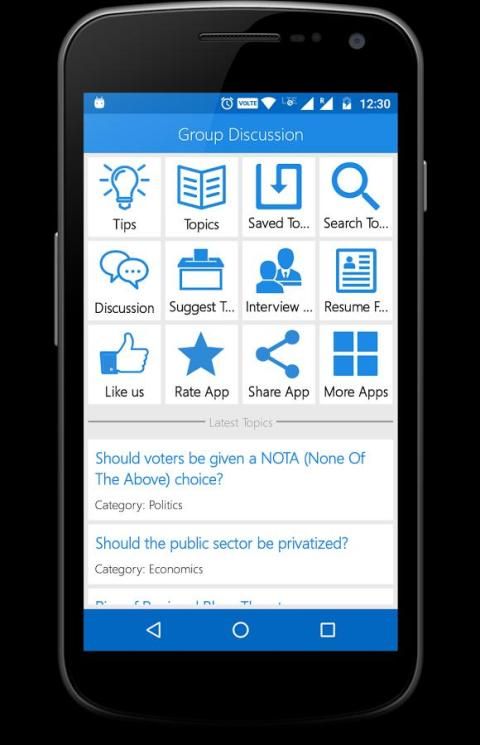 Дискуссии группы (GD) являются наиболее важной частью и круглые для каких-либо критериев отбора в организациях. Есть несколько категорий, из которых кандидаты получают темы в их GD раунда. Большинство кандидатов не говорят в связи с отсутствием на идеях по теме. Так вот это приложение, чтобы решить эту проблему. Это приложение будет помогать разным людям в интервью. Это приложение также отлично подходит для размещения свои мысли по теме. Есть некоторые моменты, которые практикуются перед встречей группового обсуждения т.е. групповой дискуссии советы. Мы добавили много советов.