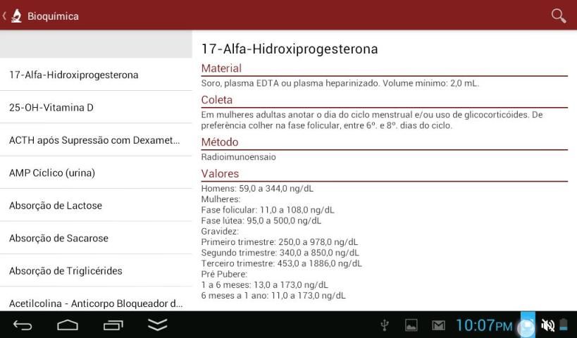 Все тесты делятся на категории: биохимические, гематологические, микробиологии, паразитологии и иммунологии; и все же пользователь имеет в своем распоряжении возможность использовать поиск, чтобы найти конкретный экзамен.