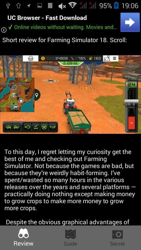 Я обнаружил, что я до сих пор предпочитаю играть на мобильном телефоне. Farming Simulator 18 является третьим официальным Farming Simulator сделать это путь к мобильным и, ну, это больше Farming Simulator. Для лучшего или худшего.