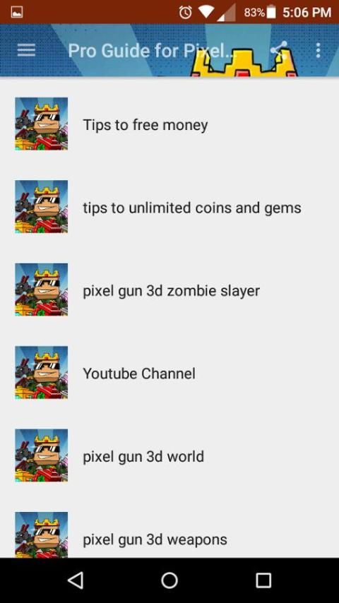New Pixel Gun 3d советы будут добавлены в мире каждый день. Получите самые последние подсказки и советы для Pixel Gun здесь, в этом приложении. Чем больше новых советов добавляются к миру, они обновляются в этом приложении, хотя видео, веб-сайты и другие способы. Получить все виды помощи и советов в этом про guide.Learn, как получить 1000 монет, получить свободные деньги, зомби убийца, все оружие и многое другое. Смотрите видео о том, как получить последние и самые большие подсказки, чтобы скачать и пользоваться в настоящее время.