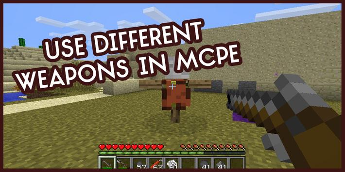 Майнкрафт мод на оружие - это более 100 различных пушек. Выбирайте любые пушки для майнкрафт и побеждайте! Вы можете скачать много оружие для майнкрафта и выбрать как установить мод на оружие для minecraft pe. Существует 2 варианта установки мод на оружие для mcpe: без блок лаунчера - в этому случае вы должны скачать аддон на оружие. И второй вариант - через mcpe master - в этом случае вы можете скачать десно ганс мод на оружие. Или любой другой gun master mod. Если вы хотите получить оружие для майнкрафт без модов, то вы можете создать обычный меч. Моды на майнкрафт оружие без интернета работает также как и с интернетом. Вы можете скачать бесплатно моды на оружие для майнкрафт покет эдишн. Также вы получите мод на броню, мод на мачете для майнкрафт и броню.