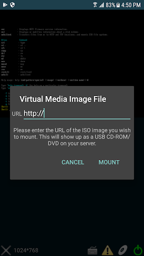 - Tap the CD icon to mount/unmount a virtual media URL