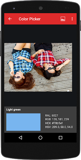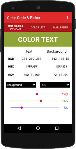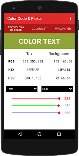 Show hex code, RED-GREEN-BLUE values RAL Color code with name and HSV values.