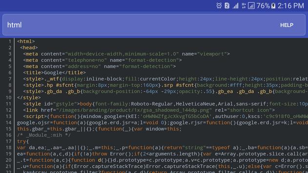 Inspect the source code of HTML,XML,CSS and Java Script of any web page. Html Source code viwer is an app which used for inspecting the code of web page and manipulate the code by CSS selector.