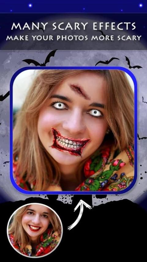 Наш макияж лица Хэллоуин наполнен большими реалистическими жутким эффектов, с помощью которых вы можете напугать людей и сделать этот Хэллоуин замечательный опыт. Вы можете выбрать любое изображение из галереи телефона или нажмите на изображение, а затем преобразовать эту простую, глядя на изображение своего друга в смертельной зомби нашим страшным лицом автоматической смены,