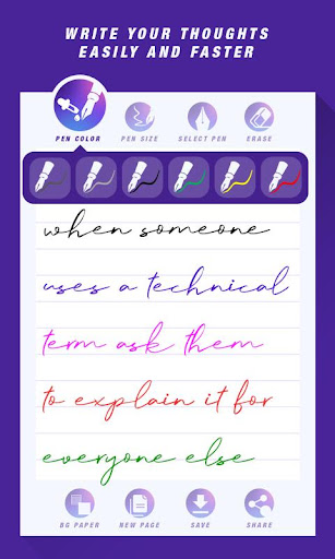 Писать своими руками всегда весело, и даже больше, если вы можете написать на своих планшетах или мобильных телефонах.Вам не нужно искать бумагу или ручку, чтобы быстро записать некоторые заметки.Естественный путь и ощущение написания с использованием этой ручной записной площадки.Эффективный способ записать заметки на своем телефоне.