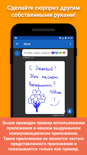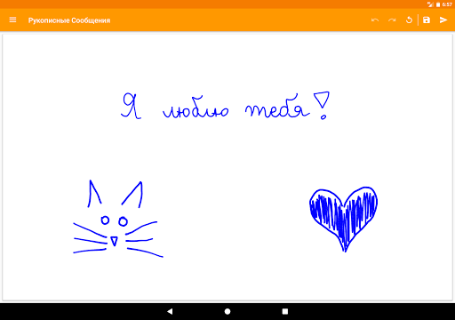 Удивите ваших друзей с помощью оригинальных, уникальных и личных рукописных сообщений. Отправьте их через SMS (MMS), мессенджер, соцсети, электронную почту с помощью этого великолепного инструмента. Пишите текст, рисуйте или обозначайте что угодно.