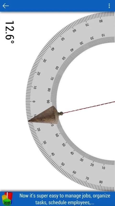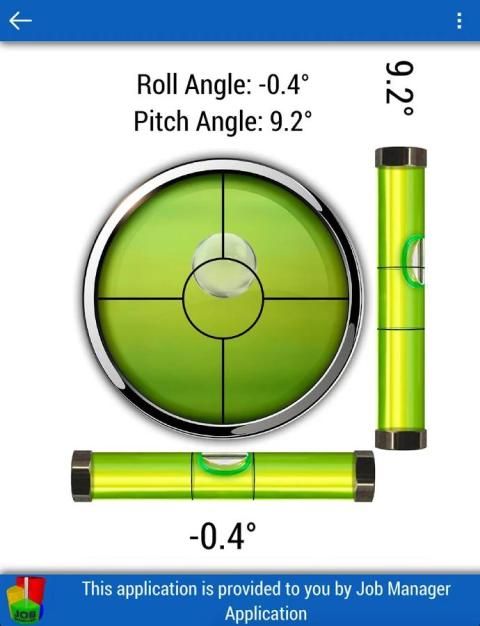 Держите телефон против любого объекта и отвес показывает отклонение от X и Y оси в градусах.