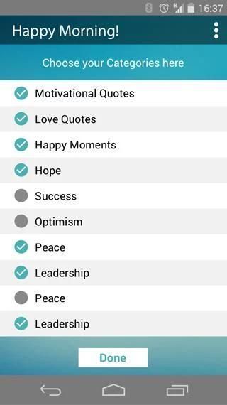 Как насчет вставая с постели с улыбкой каждый день? Счастливый Утро поможет вам начать свой день с мотивационных и вдохновляющих цитат с утренней тревоги. Вы также можете поделиться котировки легко для ваших любимых каналов социальных медиа или можно запланировать их для совместного позже в тот же день.