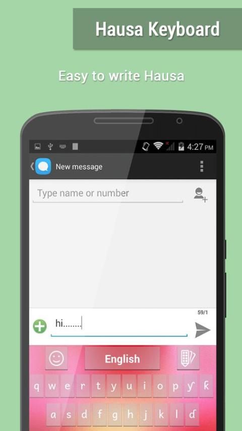 хауса клавиатуры появится, но если вы хотите, чтобы писать по-английски в середине текста, нажмите на кнопку английского языка и изменения в течение доли времени.