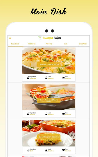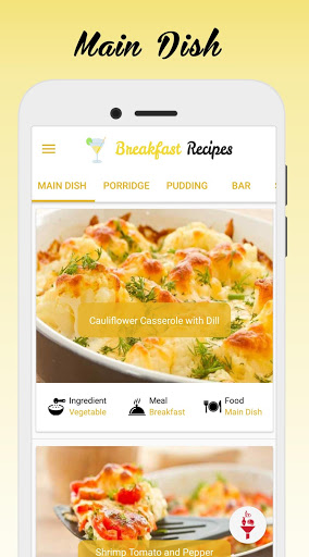- приложение имеет большой и очень вкусный выбор легких рецептов для завтрака.