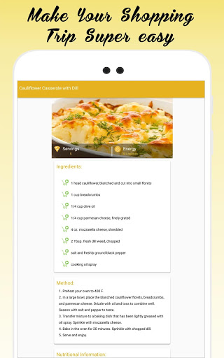 Еще одна интересная особенность в этом приложении - это то, что вы можете легко выбрать ингредиенты, которые вам нужно купить, и все это будет отображаться в разделе «Список покупок». Наконец, вы можете наслаждаться этими идеями здорового завтрака в любое время, потому что после установки на вашем устройстве Android; больше не нужно подключения к Интернету.