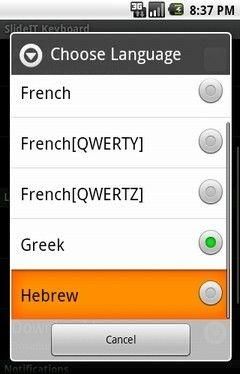 Hebrew Language Pack Plugin, for the SlideIT Keyboard v2.0 After installing, go to SlideIT Setting and select it as your primary or secondary languages. = Hebrew fonts embedded.= (Need Hebrew fonts in the ROM to support all text editors)