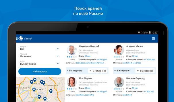 - интерактивная карта с указанием расположения врачей и клиник в зависимости от Вашей геопозиции;