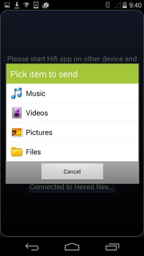 HiFi 1.0 является пылающий быстрый способ отправлять и получать большие файлы между андроид устройств, использующих Wi-Fi Direct.