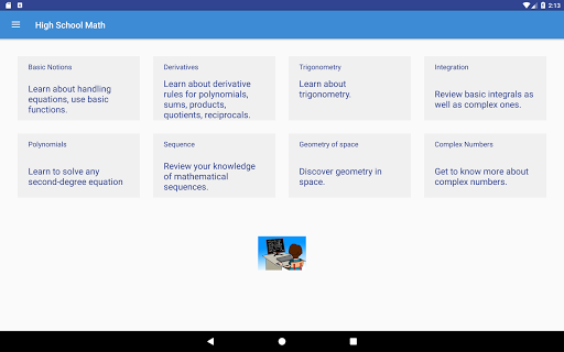 -Lessons in math (derivatives, integrals, trigonometry, geometry, complex numbers).
