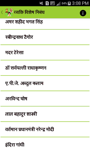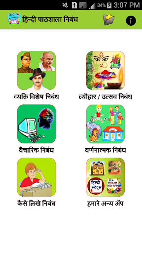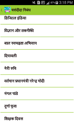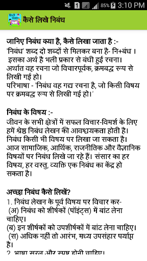 हिंदी निबंध अॅप्लिकेशन में आपका स्वागत है। इस अॅप्लिकेशन में १२५ से अधिक निबंध है। बच्चों को परीक्षा और पढ़ने के हिसाब से यह हिंदी निबंध अॅप्लिकेशन लाभप्रद होगा । उदाहरण के लिए, महान व्यक्ति पर निबंध, त्यौहार पर निबंध, वैचारिक निबंध, वर्णनात्मक निबंध इन सारे विभागों मैं महत्वपूर्ण और उपयोगी निबंध है । इसी तरह बच्चों को अनेक शिक्षा प्राप्त होगी और यह निबंध बच्चों को परीक्षा और पढ़ने केलिए बहोत पसंद आएंगे। और इस निबंध से बच्चों को निबंध कैसे लिखे इसका ज्ञान आएगा । शारीरिक और मानसिक विकास के साथ बच्चों कों दिमाग के विकास के लिए आवश्यक है। बेशक यह निबंध अपने अनेक रूप से विकास में मदद मिलेगी।