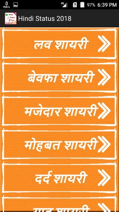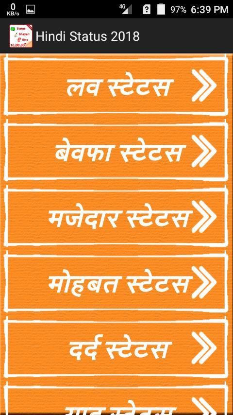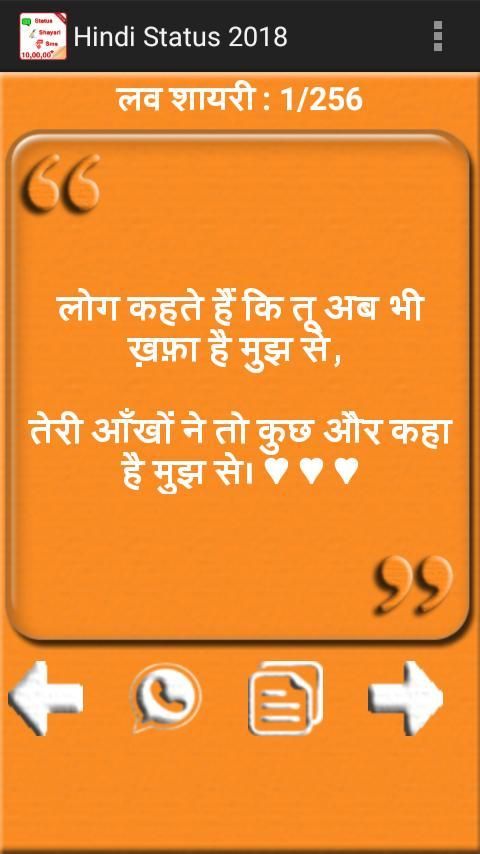 Мы обращаемся к главному официальному вебсайту для загрузки приложений. 20,000+ пользователи скачали последнюю версию Hindi Status 2018 в 9Apps бесплатно каждую неделю! Вам можно хорошо проводить время, когда пользоваться им в ваше телефоне. Это горячее приложение было выпущено в 2017-10-08. Вам можно увидеть большие приложения, которые недавно выпусканы в 9Apps.