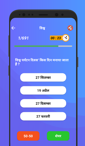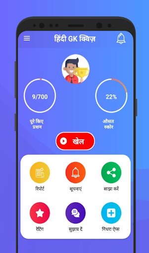 Hindi GK Quiz – a completely free Hindi app to grow your general knowledge in the Hindi language. This Hindi gk 2019 app will be suitable for all people like school students, college students, adults, and elder people. As this app has a well-attracted user interface, it is very easy to use this app.